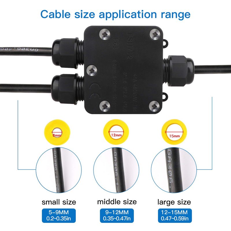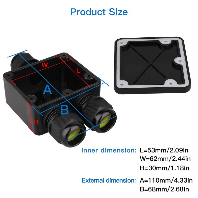 - 【IP68 Junction Box】The Helunsi 3 Way junction box is of IP68 high-level waterproof class, weatherproof, moisture-proof, dust-proof and anti-UV, making it safe to use in the sun, rainy or snowy days, fine enough for outdoor duty.