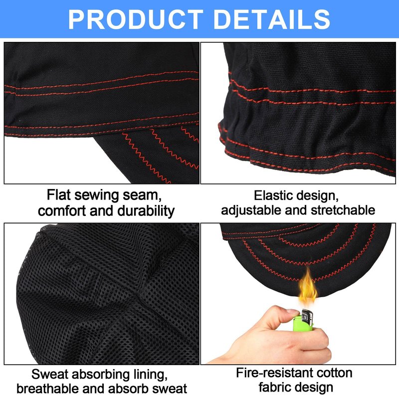 - Breathable and Sweat Absorbent: the mesh interior makes our flame resistant welding cap breathable and comfortable, soft and sweat wicking, keeping you cool the whole day, helping prevent hair pulling, easy to put on and take off