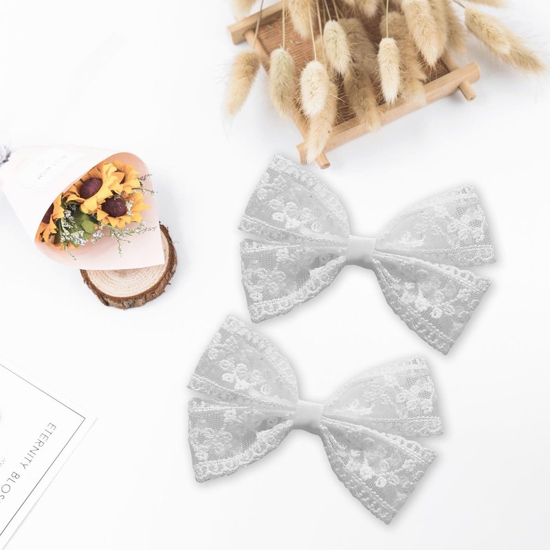 - Beautiful Structured Lace Hair Bows: 2pcs cute and durable white lace bowknot hair clips,well hand-made with soft,lightweight lace ribbons, lined metal Alligator clip,safe and comfortable to wear. looks so delicate and beautiful in any hair style.