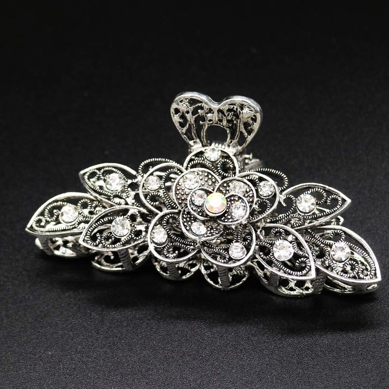 - ★【Packing】: 2 Pcs per order; Vintage style alloy hair claw with Bright White rhinestone, intricate design
