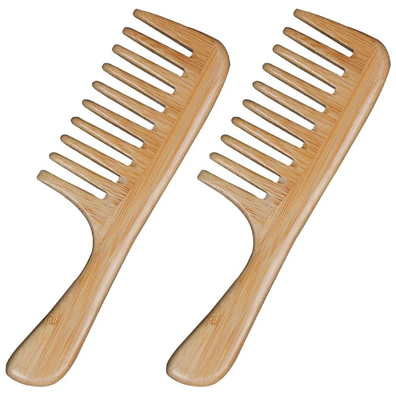 2 Pcs Wooden Wide Tooth Comb for Women Men, Anti-static Detangling Hair Comb Styling Comb for Curly Fine Straight Wet Dry Hair, Natural Bamboo Comb