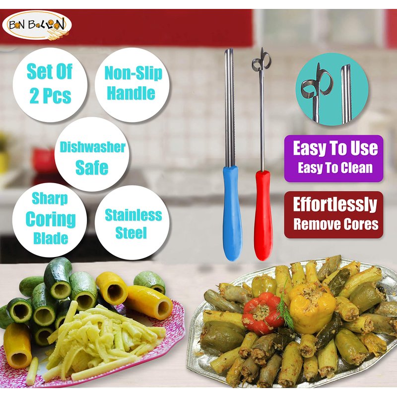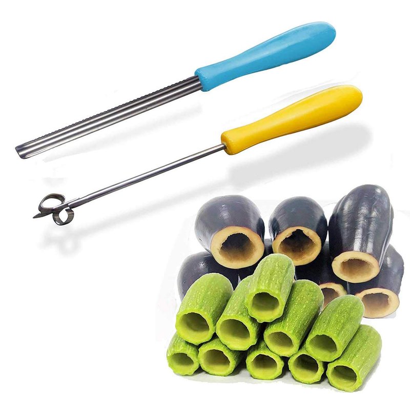 2 pcs Zucchini Squash Cucumber Corer Vegetable Corers Drill Stainless Steel Core Remover Coring Tool Kitchen Stuffed Vegetables Veggies Seed Remover Tools Remove Seeds Eggplant 10" Long Gadgets