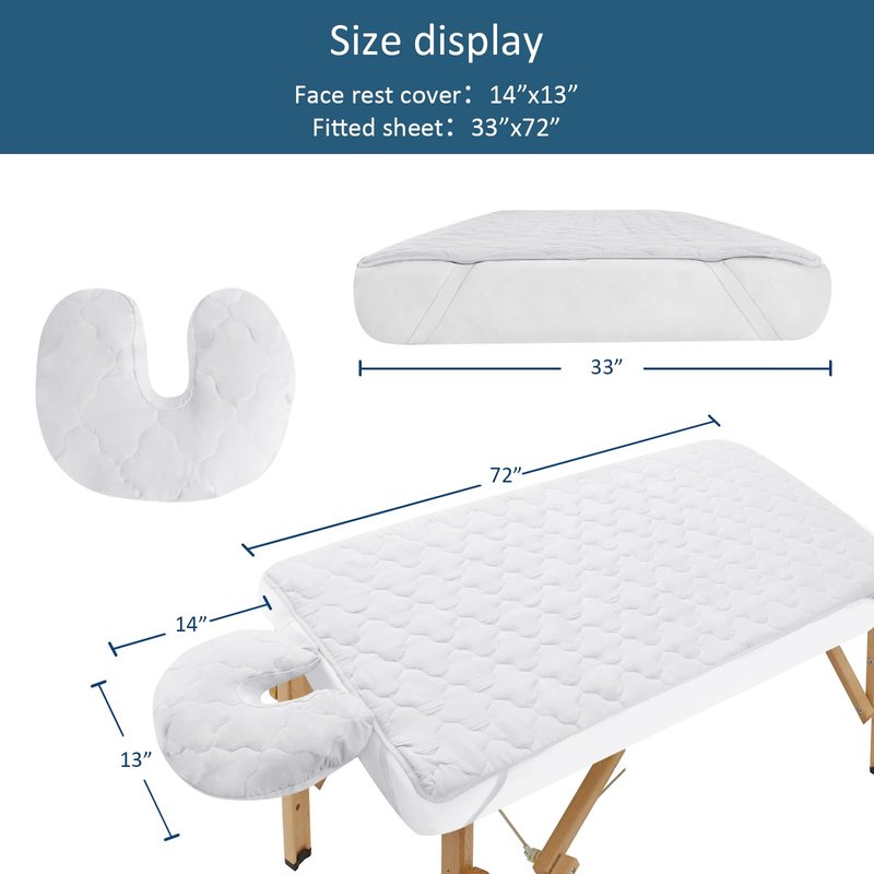 - Waterproof and Professional Massage Table Sheets: Soft microfier fabric at the top, quilted with polyester filling for some cushioning, and the middle use waterproof layer. Extra fabric at the bottom. Because of this four layer design and use soft fabric, massage sheets are super soft and cozy durable enough.