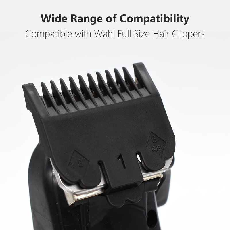 - The 2 guide combs are compatible with Wahl standard full-sized hair clippers