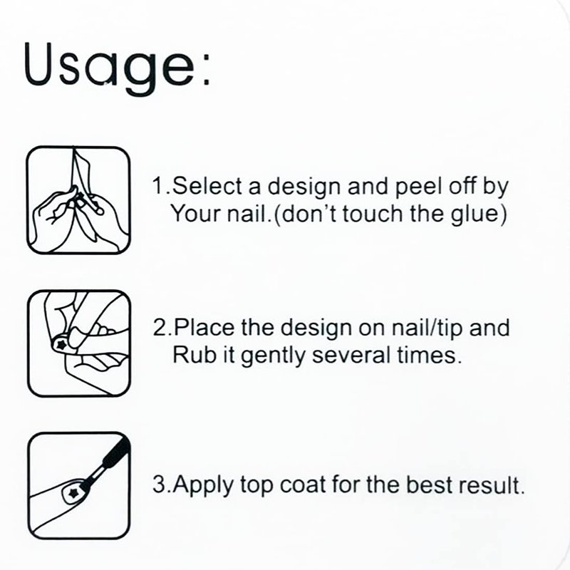 - Our nail stickers are self-adhesive, fit most natural or false nail, easy to apply and free from soaking