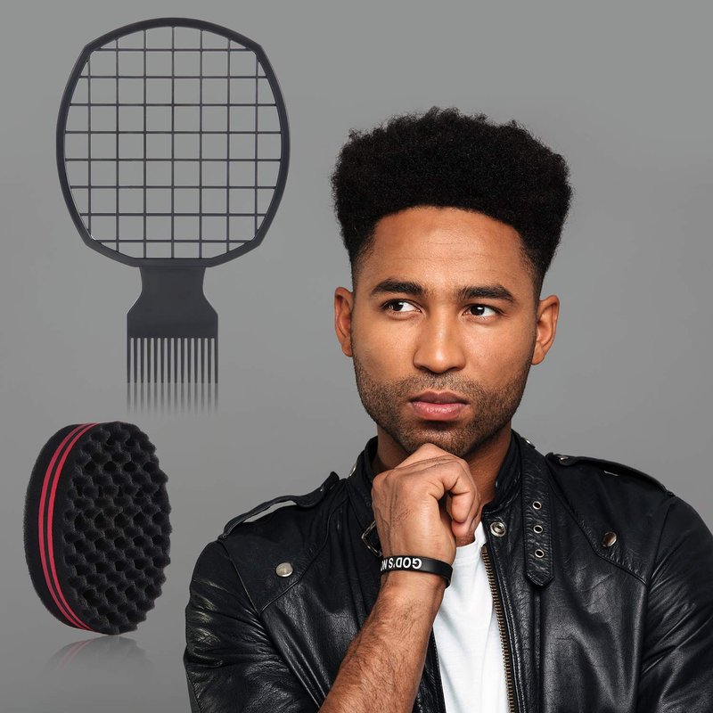 - Great combination: use the brush comb to comb your hair, then moisturize your hair that is slightly wet, you may also apply some of your styling products to the twist wave barber tool, use the sponge and go on a circular motion across your head, but do not press too hard on the hair, just spin in one direction only