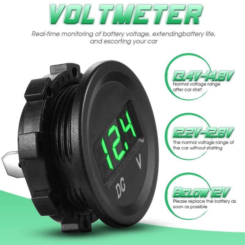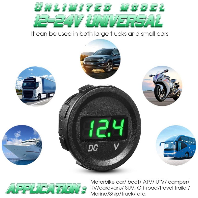 - "Wide compatibility: these digital round panel voltmeters are compatible with motorbike car, boat, ATV, UTV, camper, RV, caravans, SUV, off-road, travel trailer, ship, truck, etc."