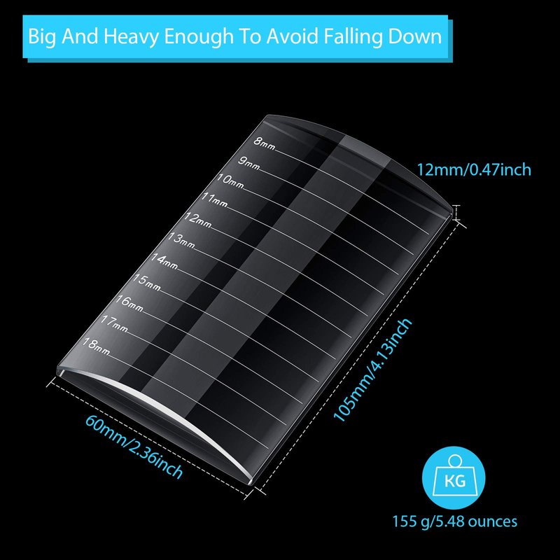 These transparent false eyelash holders come with 11 scale lines from 8 mm to 18 mm, which is carved into crystal, can help to show the eyelash length clearly and accurately, more convenient for distinguishing the length of eyelash, practical to use in the process of eyelash extensions.