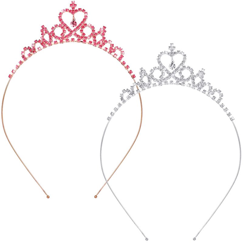 2 Pieces Girls Crystal Tiara Princess Crystal Headband Heart Rhinestone Tiara Crown for Kids Wedding Birthday Party (Classic Style)