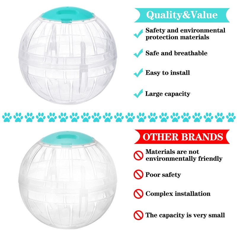 - Safe materials: the hamster exercise ball is made of quality PC material; With the lock design, it is easy to install, convenient and fast to use, while it is safe for your pets to play