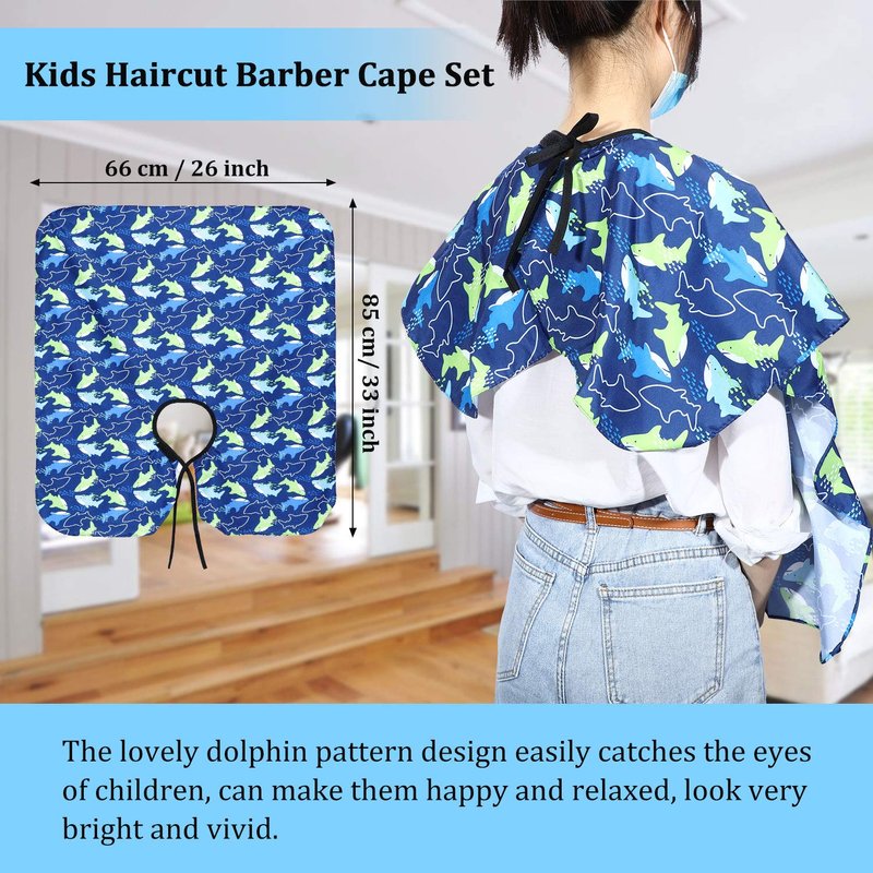 Children's haircut apron is suitable for both boys and girls, the blue dolphin pattern design makes the children happy and relaxed, no longer rejects the haircut so that you can have a good haircut at home.