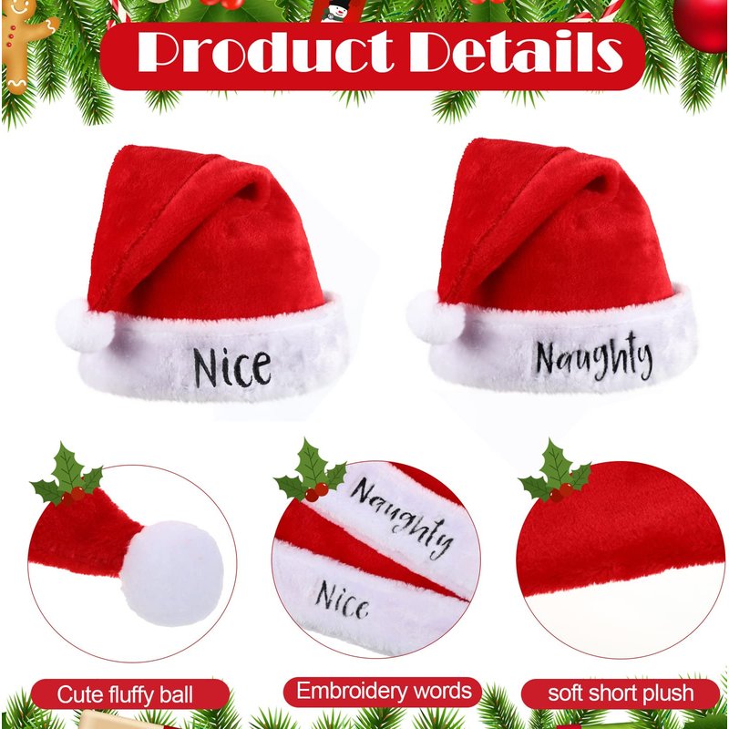 - Package details: you will get 2 pieces of Christmas Santa Claus hats, with classic red and black plaid pattern, short plush and white cuffs, embroidered letters with cute black fonts, which can easily create Christmas flavor