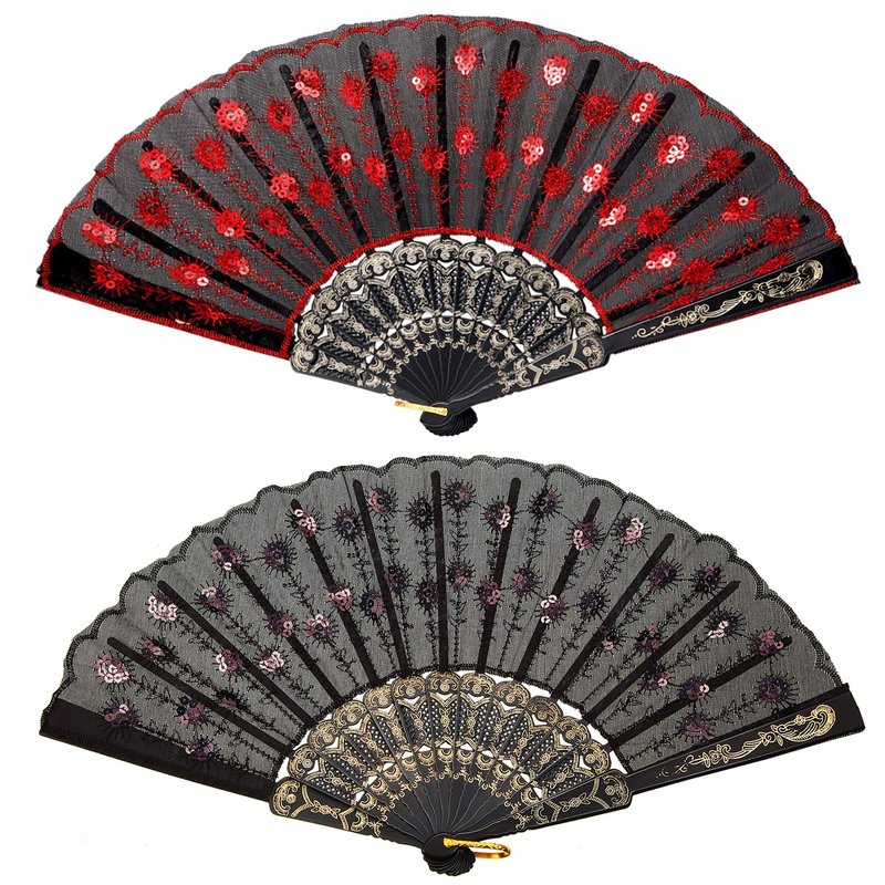 - Package content: you will receive a package includes 2 pieces of sequin fabric folding fans; Different colors of the women fans are suitable for you to match different styles of dress or makeup