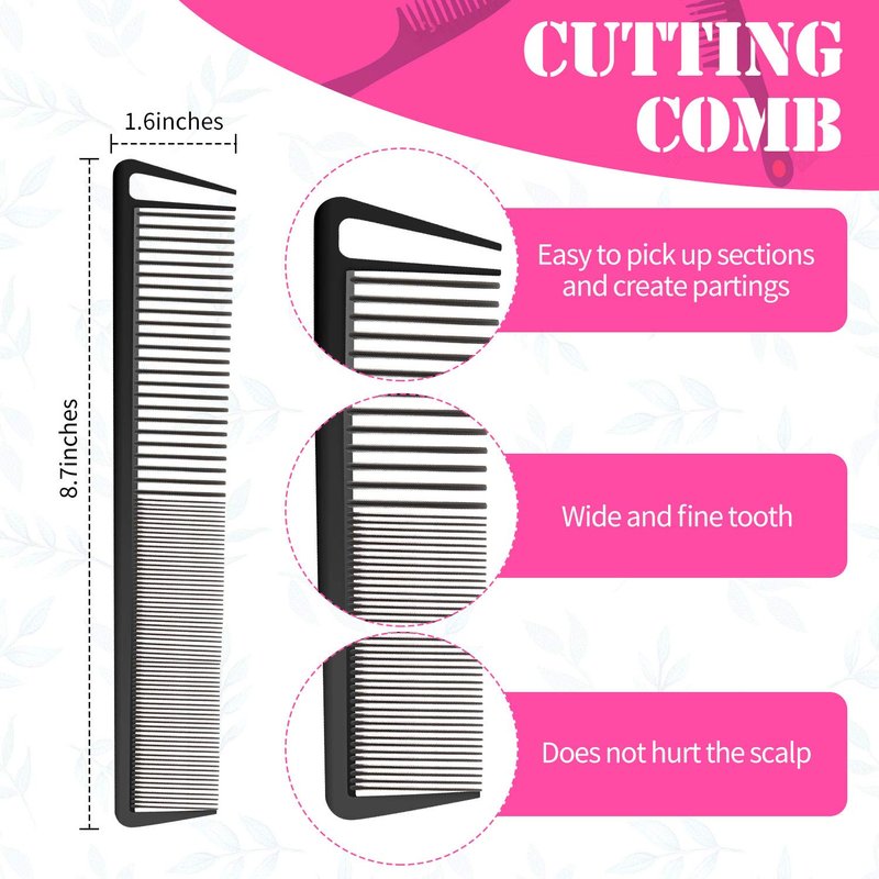 - Reasonable size: the rat tail comb is approx. 22 x 2.8 x 0.4 cm/ 8.7 x 1.1 x 0.2 inch and the cutting comb is approx. 22 x 4 x 0.3 cm/ 8.7 x 1.6 x 0.1 inch, quality alligator clip is about 11.5 cm/ 4.5 inches, they are portable and only take up little space