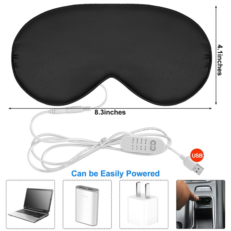 - What you get: you will get 2 pieces of silk heated eye masks and 2 pieces of USB cables, the soothing warmth helps you go into a deep sleep at home, take a rest for eyes at the office, enjoy yourself on travel and have an eye spa in the hotel; Warm note: the eye mask is compatible with a 5V2A power supply, otherwise it might not work