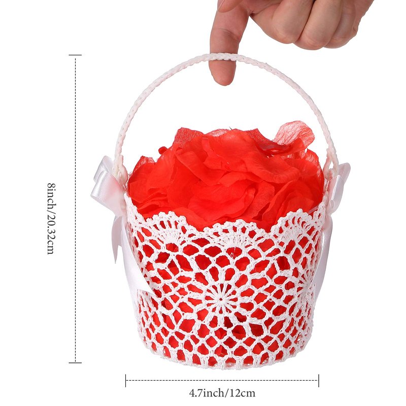 - Durable feature: the white flower basket is crocheted by hand, made of line material, attached with basket handle, and silk ribbon bowknot, sturdy enough to hold