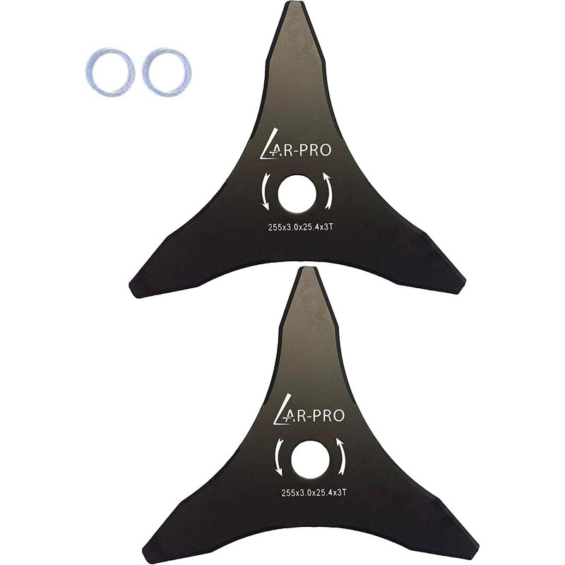 Clear Brush in No Time! Whether you're clearing shrubby weeds or cutting down invasive saplings, these blades will keep on cutting without slowing down. Star-shaped trimmer blades, especially the three-bladed models are the best knife-type trimmer blades in terms of cutting ability, endurance, and durability. These blades can cut 1-inch twigs to young trees without much effort. With thicker shrubs and trees, you'll need to ease the blade slowly and it will do the job like no other trimmer blade can! Brush Blades That Stay Sharp for Longer Not only do these blades cut like butter, but they also cut more efficiently, ensuring the longevity of the blades' sharpness. Made from fine-grade carbon steel, these blades exhibited high toughness and durability that make them suitable for heavy-duty and rough work without bending, chipping, or dulling. A Note on Compatibility Not all brands and designs of straight shaft trimmers accept this type of blade. Even with the right-size arbor, these blades may still not work on your trimmer two main reasons including: The trimmer head is not removable and/or its design won't allow the mounting of non-standard blades, adapters or accessories. Please take note, that these blades may need additional adapters to mount securely on your specific weed eater model. You have an electric trimmer. These types of trimmers and weed whackers may not have sufficient torque to effectively and safely operate with this type of brush blade. These blades may not fit all models of the brush trimmer brands mentioned above. As this is an aftermarket product, the specifications are based on existing OEM products. You can be assured that these blades has the standard dimensions. In compatible accessories can cause stress, wear, and unnecessary vibrations that can eventually cause machine failure. It's best to double-check compatibility before purchasing.