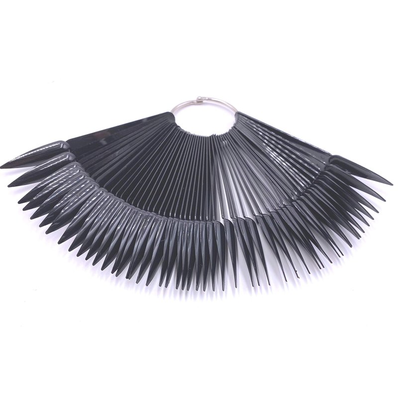 2 Sets 100 Tips Fan Shape Plastic Nail Art Tips Display Polish Board Display Practice Sticks with Metal Split Ring Holder (White Color)