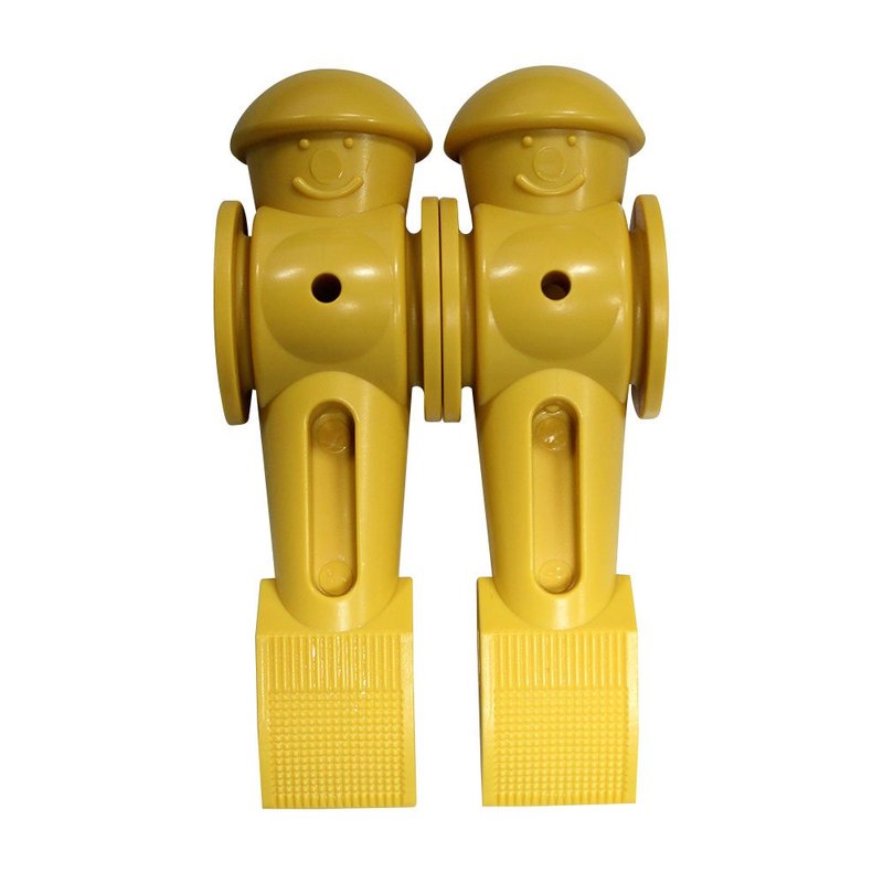 With sports, come injuries. Its not easy to prevent, but easy to replace your broken or damaged foosball players. Simply tap the pins out of the foosball men until you reach the one that needs to be replaced. Slide the old player off, and the new player on. Remember the smile goes on the right side. These two counterbalanced yellow foosball players from Tornado Foosball will prove to be more than able-bodied replacements.