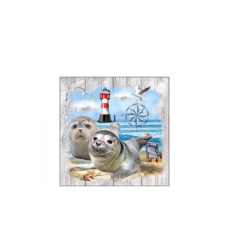 20-ct 6.5 Seal Couple Beach Paper Napkins Party Printed Blue Paper Napkins Seahorse Cocktail Napkins Beach Napkins Paper Coastal Cocktail Napkins Nautical Napkins Beach Themed Party Napkins Starfish