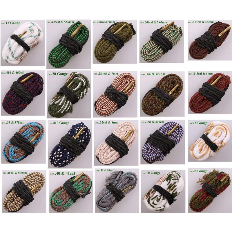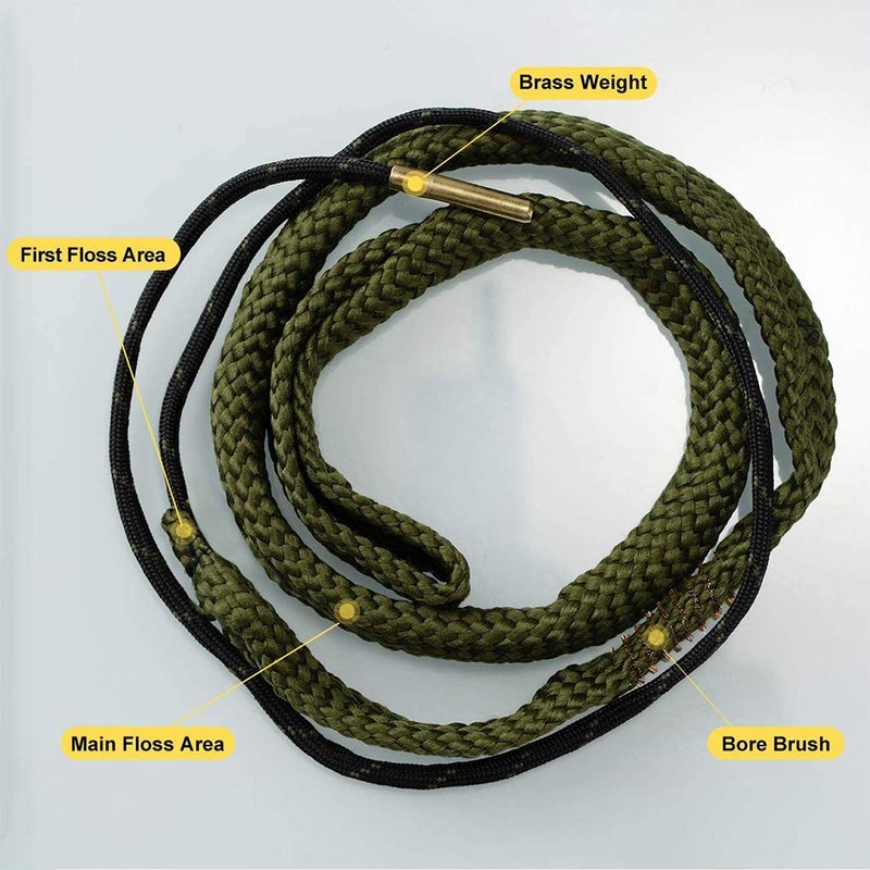 - 【DURABLE MATERIAL】Gun bore cleaning made from a high density nylon material which environmental friendly and can be used repeatedly. The end of the pull string has a brass weight that you drop down the barrel and pull it through.Makes cleaning barrels very easy and effortless.
