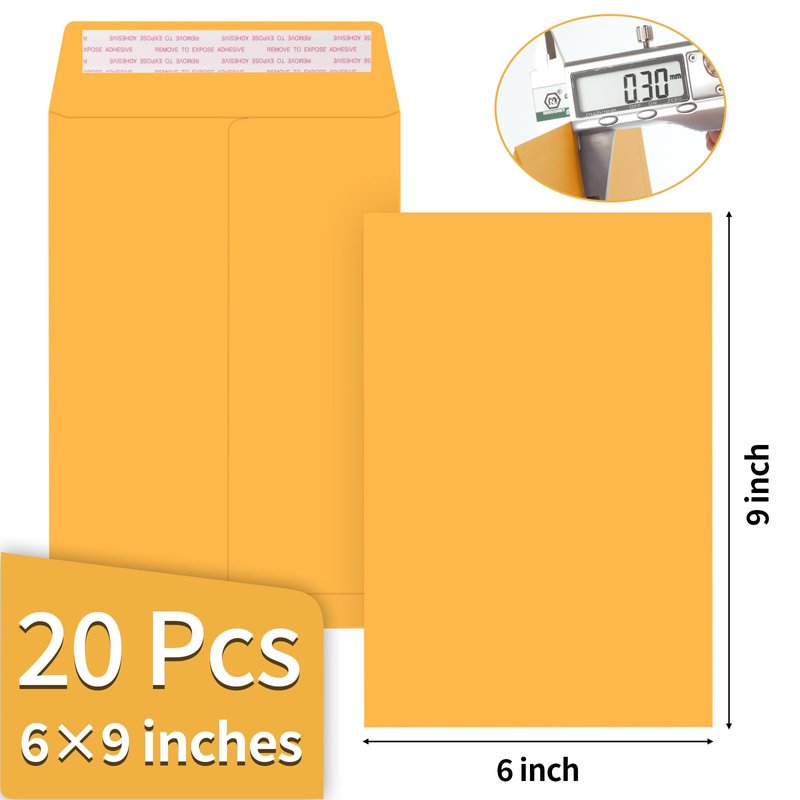 - ✉️【20 Pcs 6×9 Brown Envelopes】You will receive 20pcs mailing envelopes, sufficient quantity to meet your use and replacement needs. The size of the manila envelopes is 6x9 inches, suitable for mailing important papers, business documents, booklets, catalogs, brochures or storing magazines, books and more.