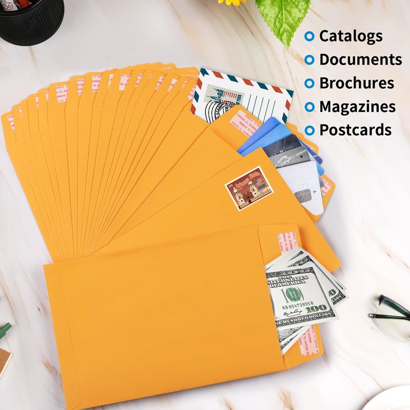- ✉️【Self-Adhesive Design】Each of our self seal envelopes is equipped with a double-sided adhesive seal, no glue and water required, no need to lick the envelopes to seal. Just peeling off the strip and sealing the flap to get an effortless mailing. Self-adhesive design manilla envelope are strong stickiness enough to keep the inner documents safe all the time.