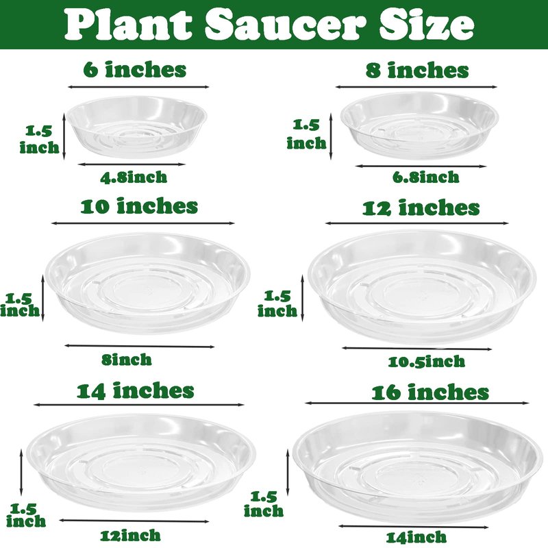 - [Crystal Clear Plastic] These transparent plastic flower pot saucers allow you to see the water level. Colorful pebbles may be used to decorate the plant drip tray.