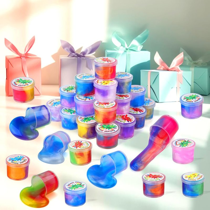 - Suitable for Every Occosion: This soft colorful slime is suitable for birthdays, Easter, Valentine's Day, Halloween, Christmas and other holiday occasions. Small and convenient, each comes in a small plastic box, can be used as birthday gifts, Easter basket stuffers, goodie bag fillers, party favors for kids 4-8 8-12, school treasure box toys, classroom prizes, etc.