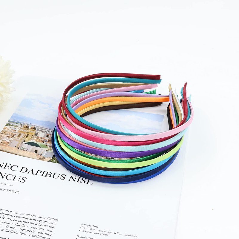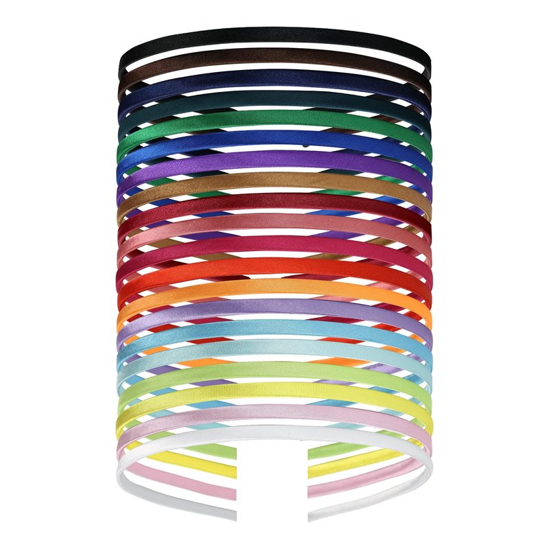 20 Pack Rainbow Plain Blank Cloth Satin Fabric Covered Slim Thin Hard Metal Headband Simple Skinny Wire Hair band Elastic Hair Hoop Holder Clasp Tiara Crown Headpiece Craft DIY Accessories for Women