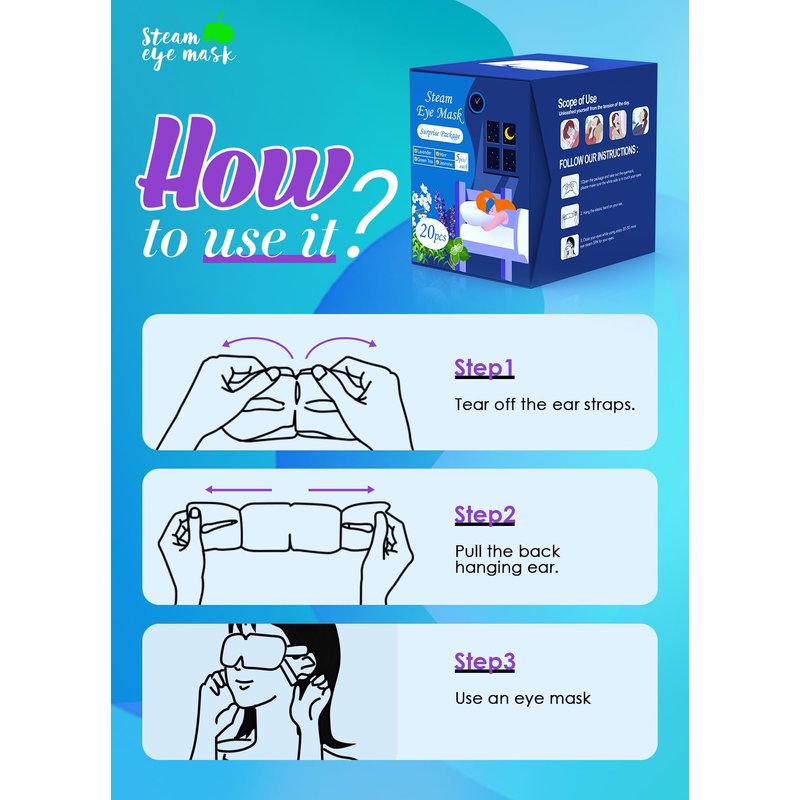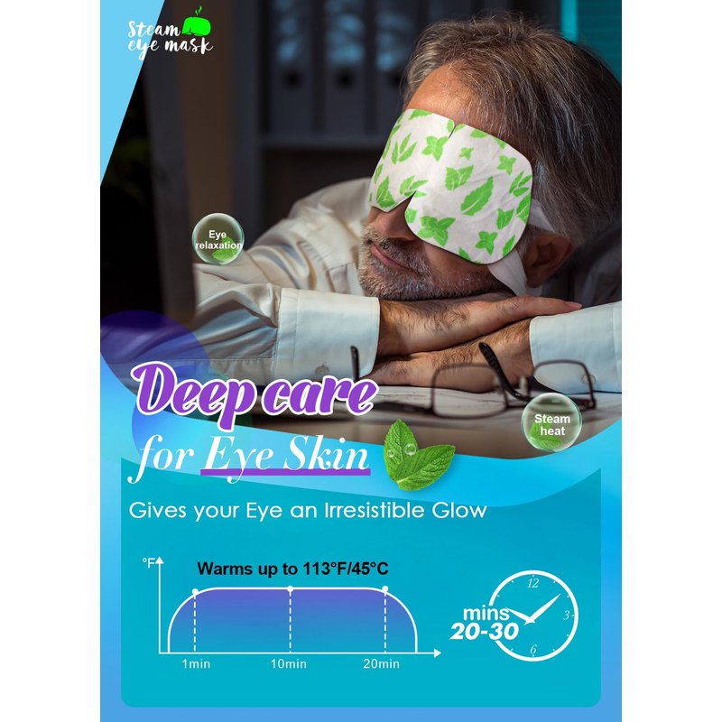 - 【20-30 Mins Dry Eye Relief】Our steam eye masks can relieve your eye fatigue, moisturize your eyes, improve your sleep quality, reduce dry puffy eyes and dark circles. The heated eye mask will promote your blood circulation, release fine moist steam, comfort the skin around eyes, let tired eye enjoy the steam, fully relieve dry eyes and eye astringent with just 30-minute eye spa.