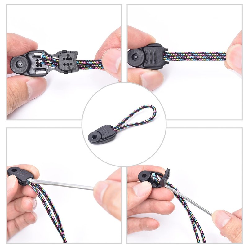 - [Application] Parcord Zipper Pull Cord Stoppers are widely used in various of exquisite items or replacement accessories for Sportswear,Boots,Shoes,Luggage,Purses ,Drawstrings, Paracord Knife Lanyard Loops Bracelets Parachute 550 cord rope DIY Project etc