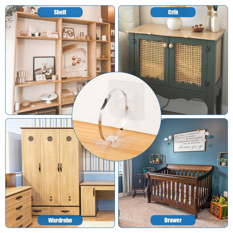 - Practicality: This furniture anchor set prevents furniture from tipping over, ensuring the furniture is stable. It is usable and reliable; with strong stainless steel ties and nylon straps for added safety. (Warm Note: It will be more reliable if fixed at all corners of the furniture.)