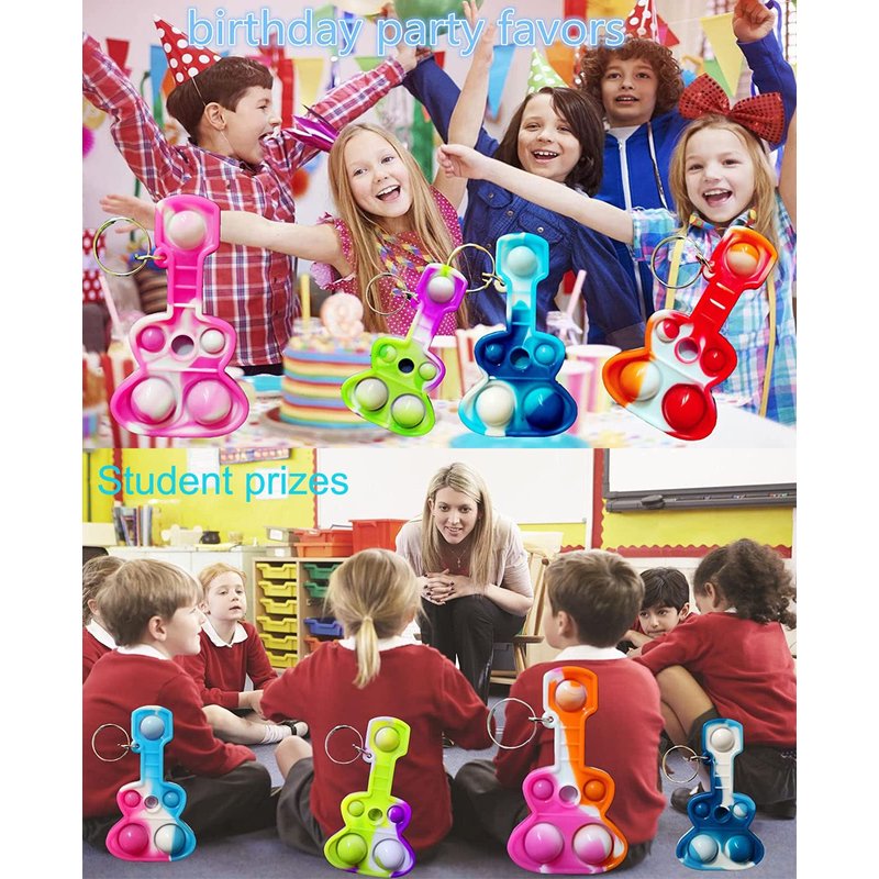 20 Packs Rainbow Bulk Music Mini Pop Guitar Bubble Fidget Keychain Gift for Holiday Kids Boys Girls Beach Party Favors and Classroom Student Prize