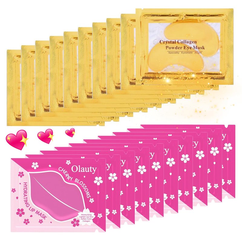 - 【Great Value Pack Set】The combination of 10 pieces of collagen crystal lip mask and 10 pieces of 24k gold eye mask is cool to the touch, stimulates and regenerates skin cells, improves dry and dull lips, removes dark circles, and provides double care for lips and eyes.