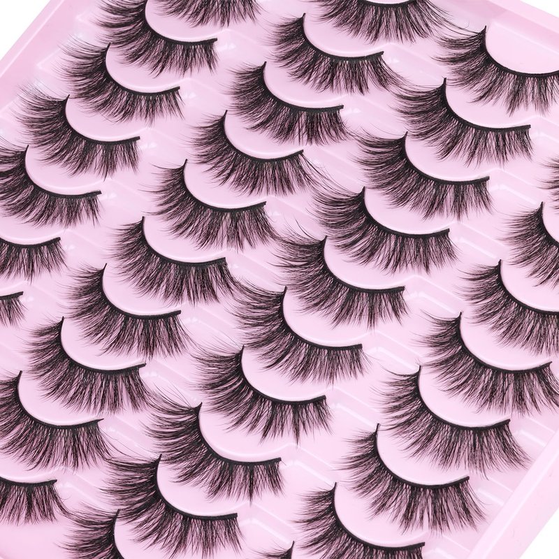 20 Pairs Lashes Wispy Faux Mink Lashes Fluffy 15mm Cat Eye False Eyelashes Natural Look 3D Volume C Curl Strip Lashes Pack by Kiromiro