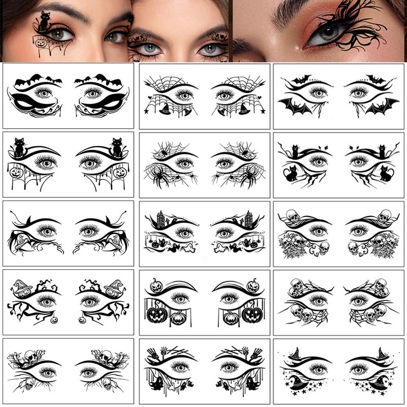 20 Pairs of Halloween Eye Shadow Temporary Tattoo Stickers Eyeliner Decals Face Eye Makeup Stickers for Women Girls Halloween Masquerade Party