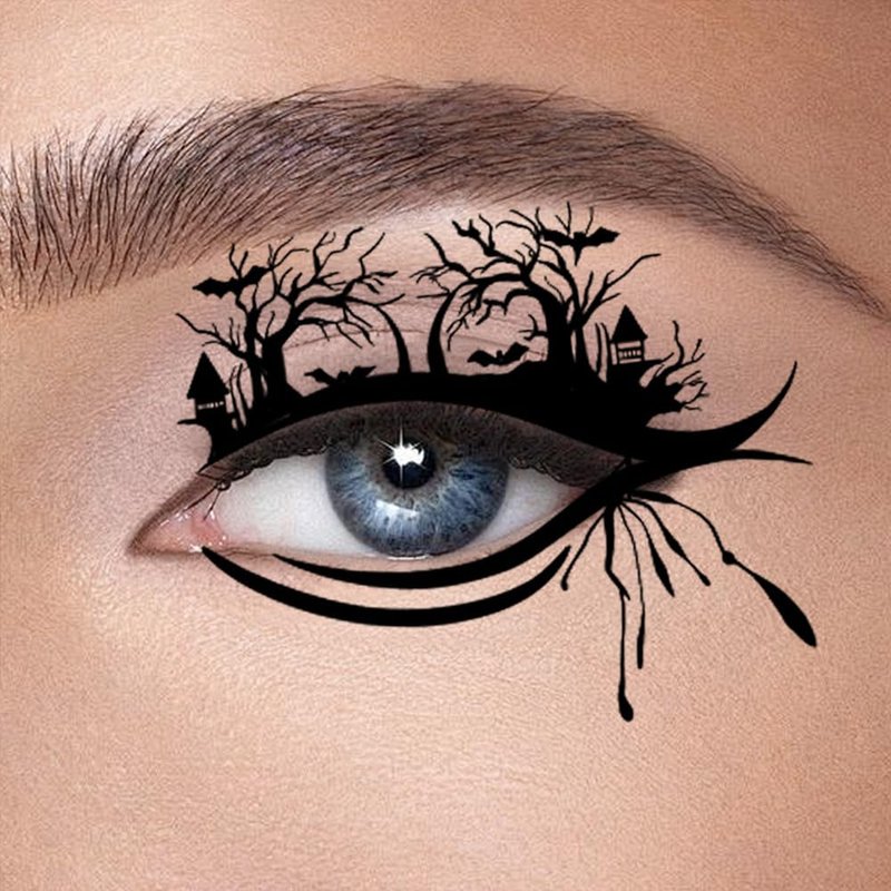 - Add a touch of mystery to your party with this stylish eye tattoo sticker, which features a Halloween pattern in a classic, glamorous black style.