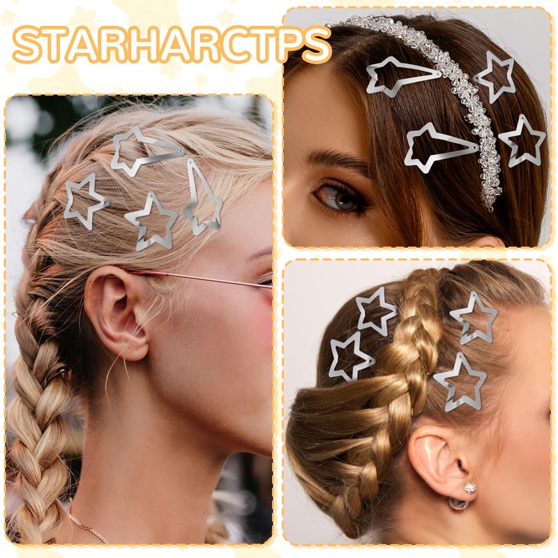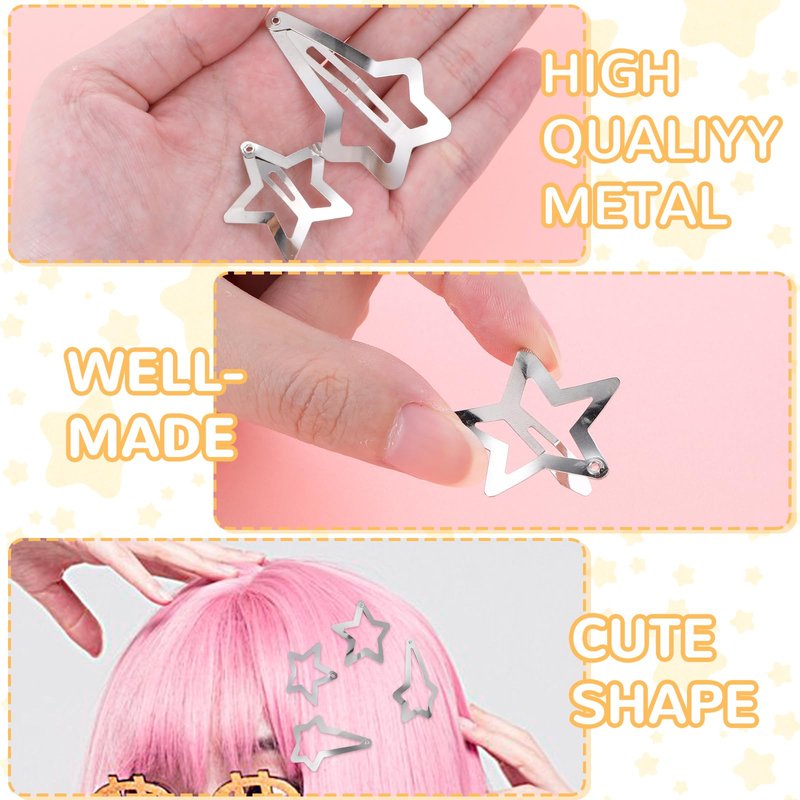- Good Quality: These star hair clips are unpainted and all silver color, suitable for you. y2k hair accessories are made of metal alloy material with good surface treatment, will not rust