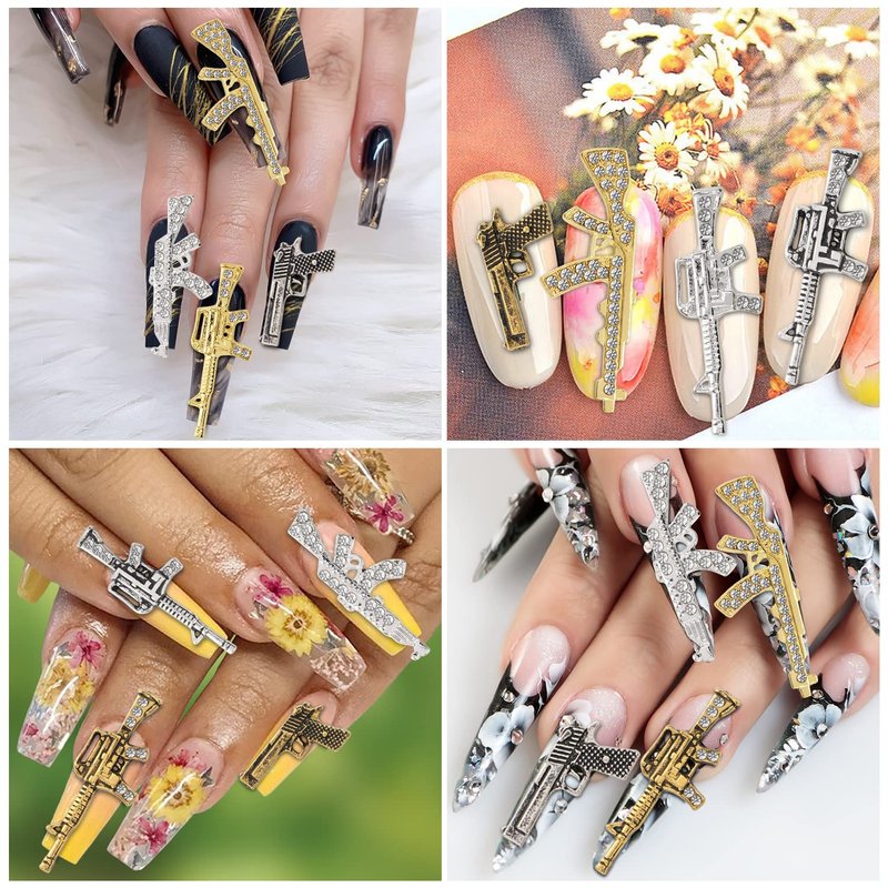 - ❤ Premium Material - The 3D gun nail art decors for DIY are made of high-quality metal, shiny in look.You'll love the shape and color our alloy rifle gun nail charm has to offer!