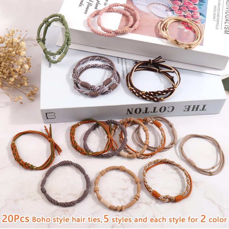 - You will receive: There are 20 pcs boho hair ties bracelets for women with 5 boho pattern, 2 colors for each style, 10 colors in total.