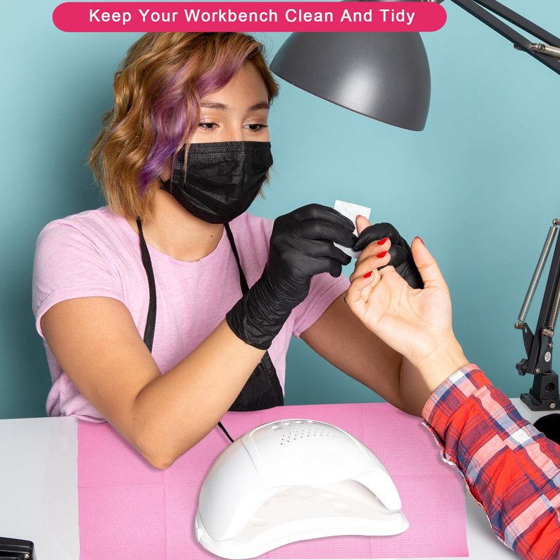 - Three-layer design: The disposable nail mat is made of double-layer wood pulp and PE film, which is not easy to break. Three-layer construction, soft yet strong.