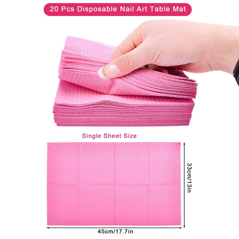 20 Pcs Disposable Nail Art Table Mat,13"x18" Nail Art Table Towels Mat,3 Ply Nail Napkins for Acrylic, Nail Art Mat Paper Sheet, Waterproof Nail Tips Art Paper for Home Salon