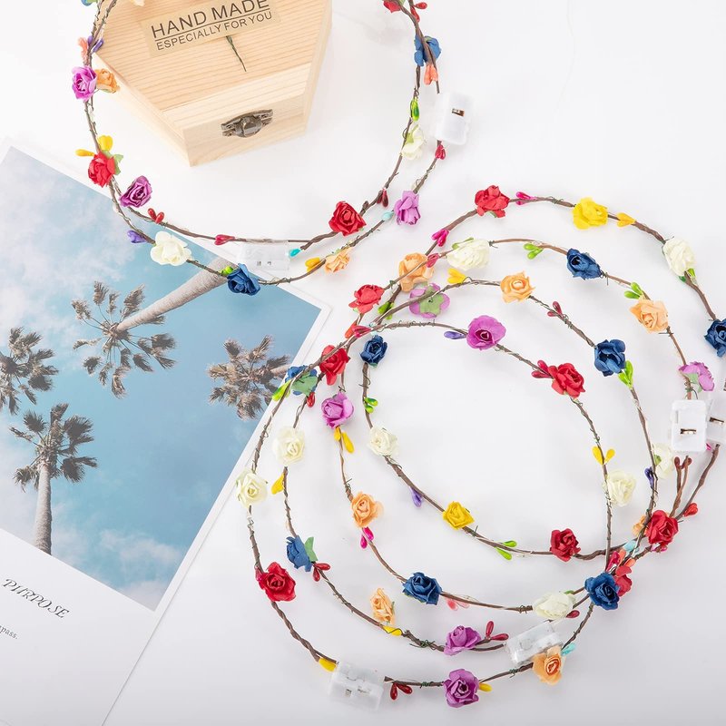 - Durable material and simple usage: These flower wreaths are made of paper flowers with flexible wire and 10 LED lights, safe and comfortable to wear, the colorful petals are wrapped around the wreath firmly and not easy to fall off.