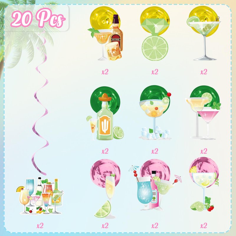 - Package Includes: 20 PCS cocktail martini-themed hanging swirls made of quality PVC and cardboard material. They are sturdy yet lightweight, not prone to bending or breaking, making them an excellent choice for your margarita and matrimony bachelorette theme party.