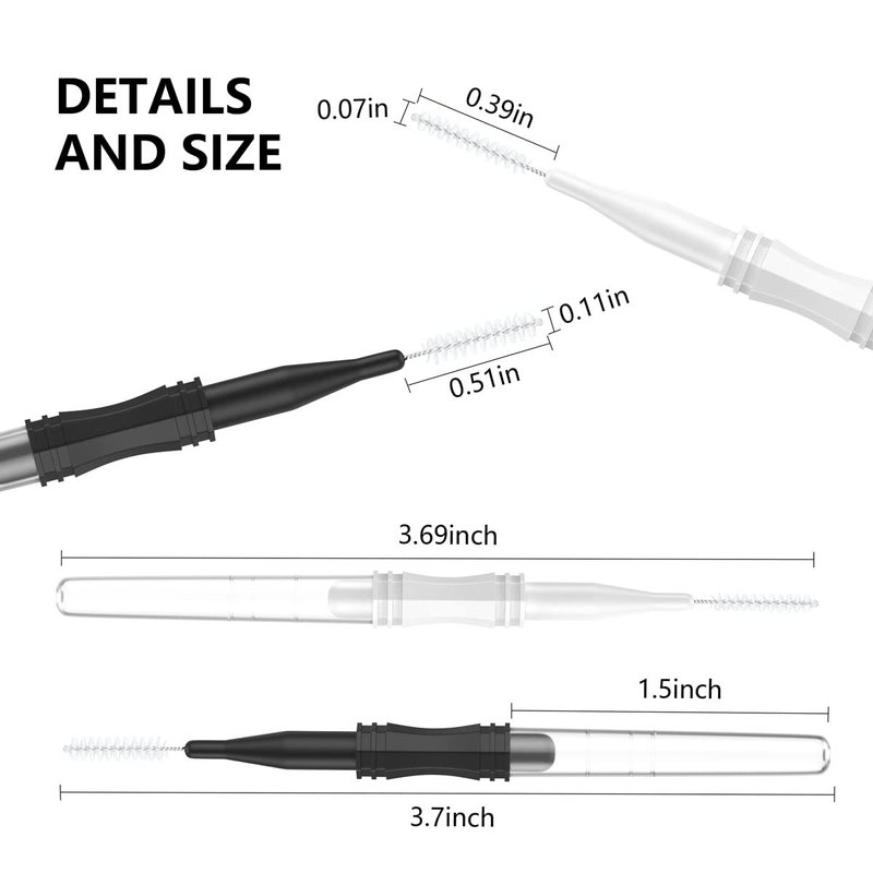 - 【Intimate Design】Eyelash brush with cap adopts a humanized design structure.Lash micro brushes spiral head gently bends 360 degrees according to your needs,ideal for separating lashes before and/or after applying mascara,curling or combing lashes.micro eyebrow brush for lamination the tube cap can not only play a dustproof role,can also be covered over the handle to extend the lash brush during use,allows you to enjoy a better experience of grooming your lashes or eyebrows.