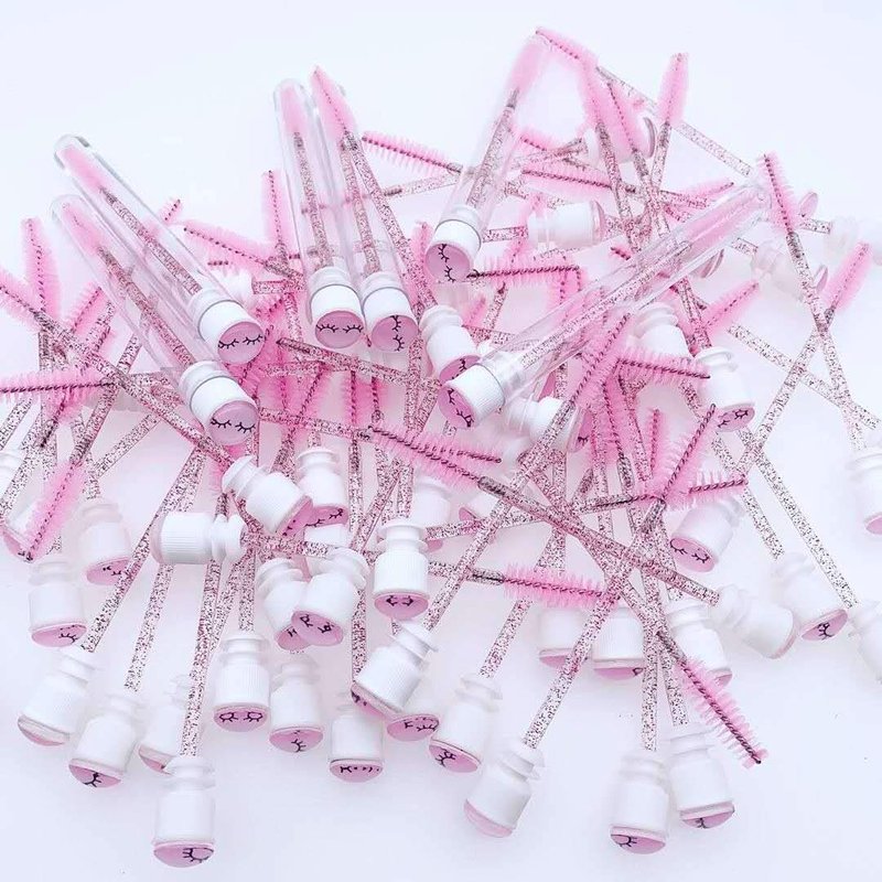 20 Pcs Pink Lash Disposable Mascara Brushes Diamond Eyelash Spoolies Makeup Brush Mascara Wand in Sanitary Tube Lash Supplies