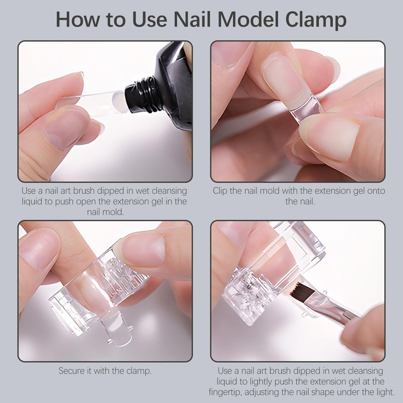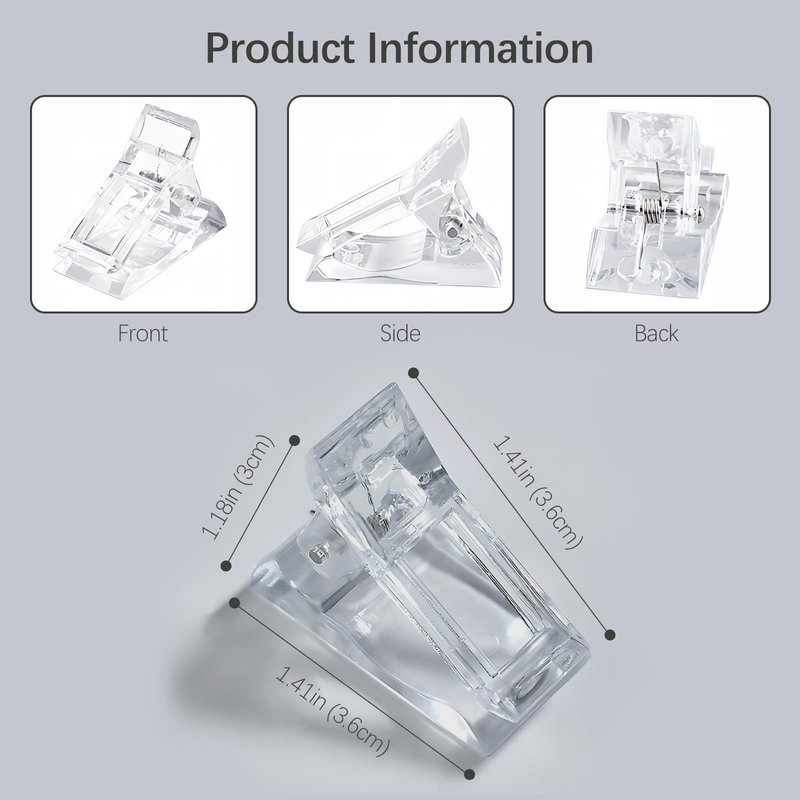 - Crafted from high-quality acrylic, They secure nail tips or dual forms during the curing of Nail Extension Gel nails, ensuring transparency, lightness, and durability.