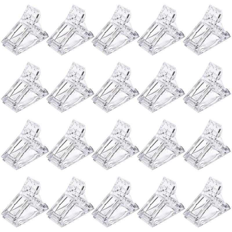 20 PCS Quick Building Nail Tips Clip Set - Ergonomic Extension Nail Plastic Finger Clamps for UV LED Builder Gel, DIY Manicure Nail Art Tool, Light and Durable (Transparent)