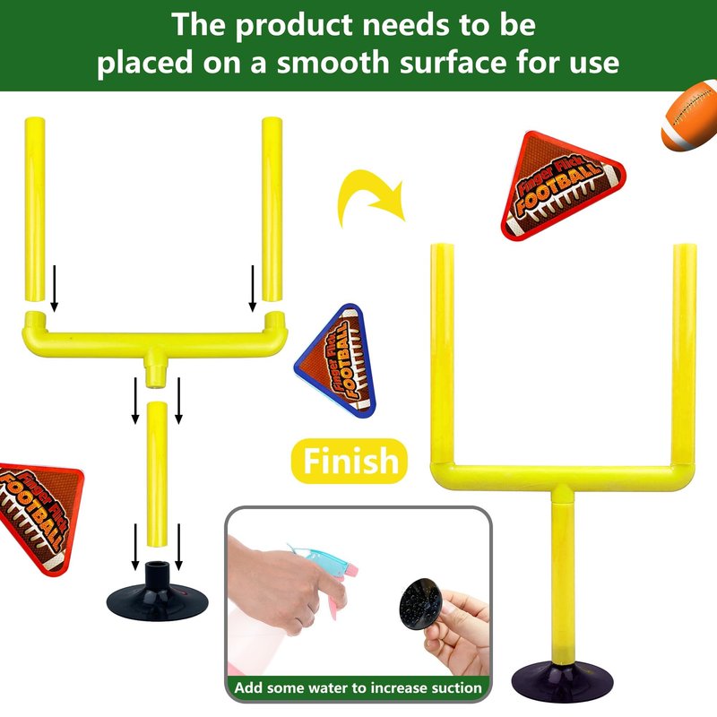 - Easy Assembly: firstly goalposts need to be installed,you need to choose a suitable desktop, put two suction cup base at the bottom of the bracket, then the base bracket will be fixed in the right position of the desktop, you can shot the foam ball by fingers, your friend and family enjoy a wonderful game.